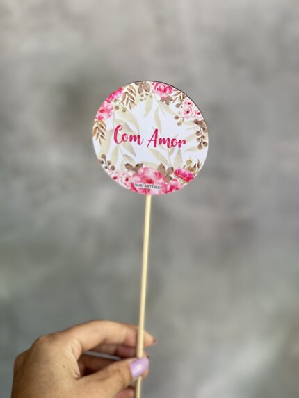 Uma plaquinha de madeira personalizada com o dizer Com amor